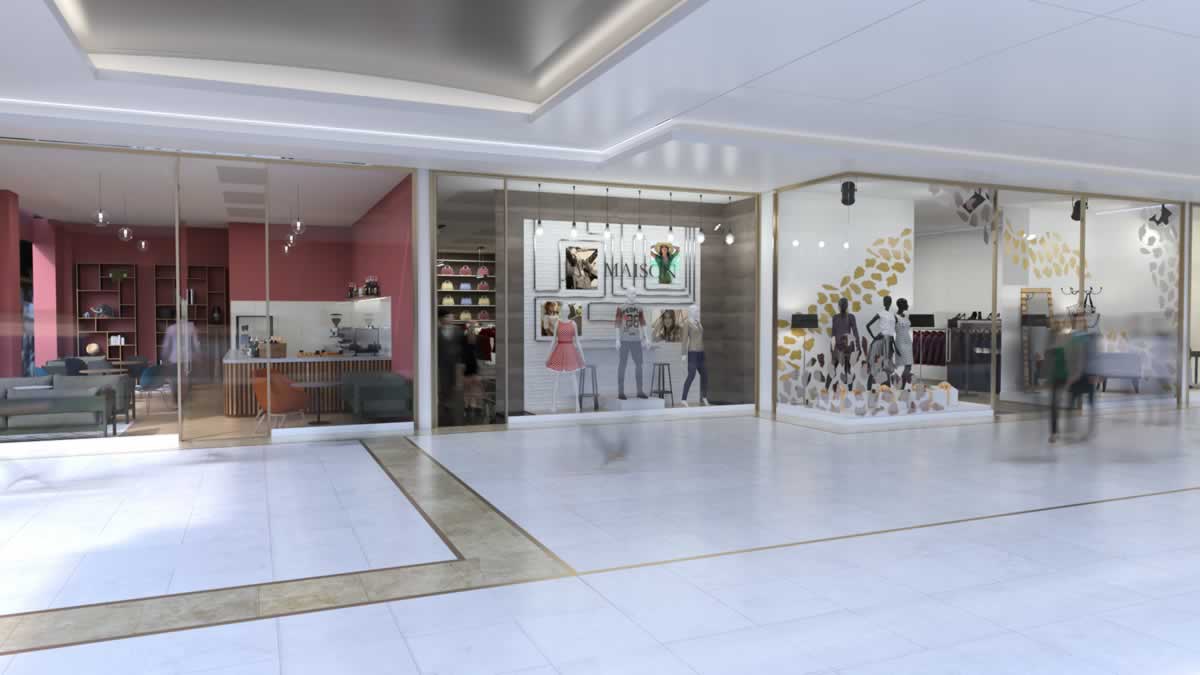 Photorealistic views of their marques presence in the context of your shopping centre helps the client to recognise how you will promote their brand recognition, Zone A presentation and key sightlines.